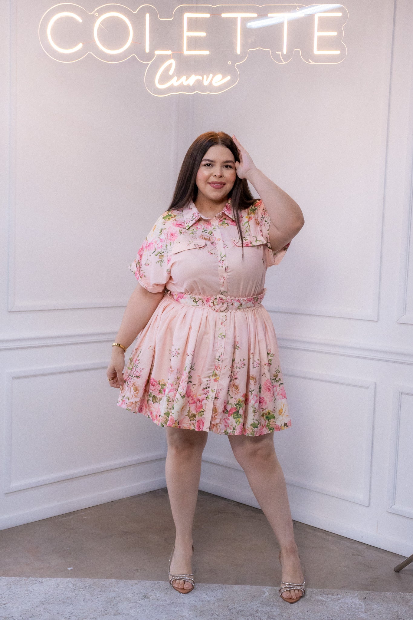 Vestido corto tipo camisa estampado romántico, con forro y cinturón al tono. Ideal para salidas, fiestas en jardín. Comodo y fresco.