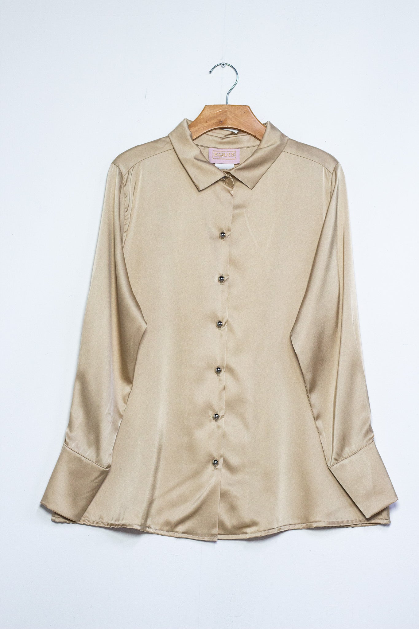Camisa satin lisa beige