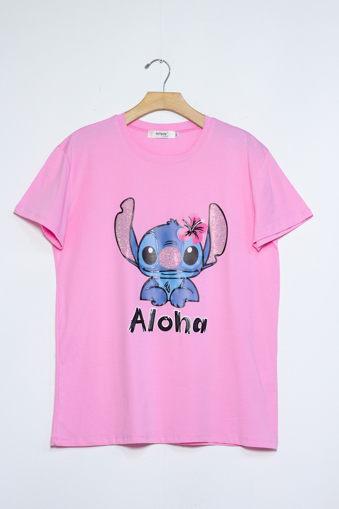 Playera stitch aloha rosa