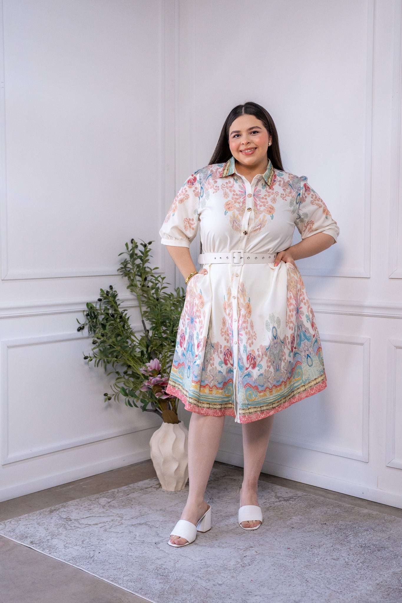 Maxi vestido camisero liso blanco