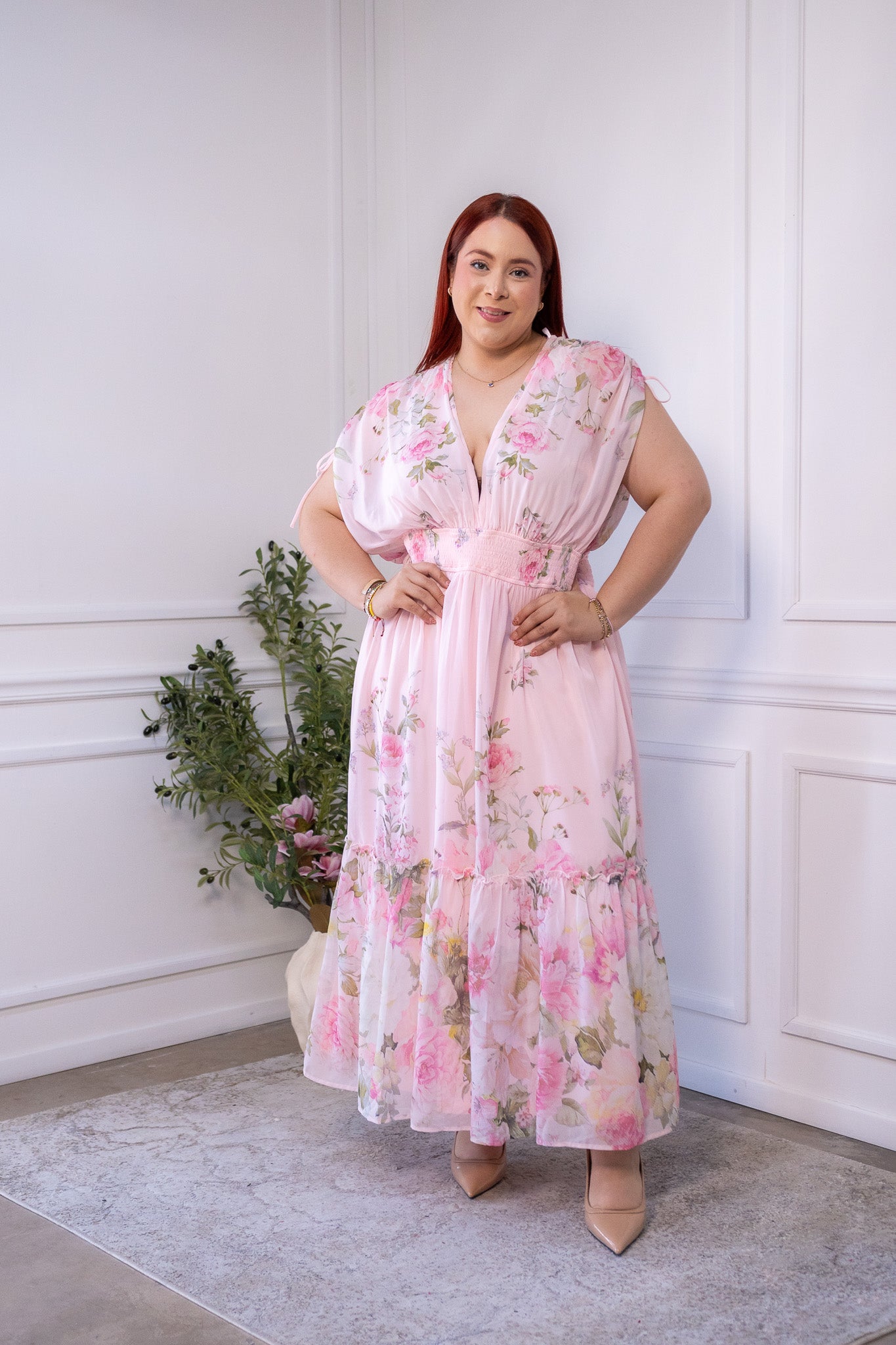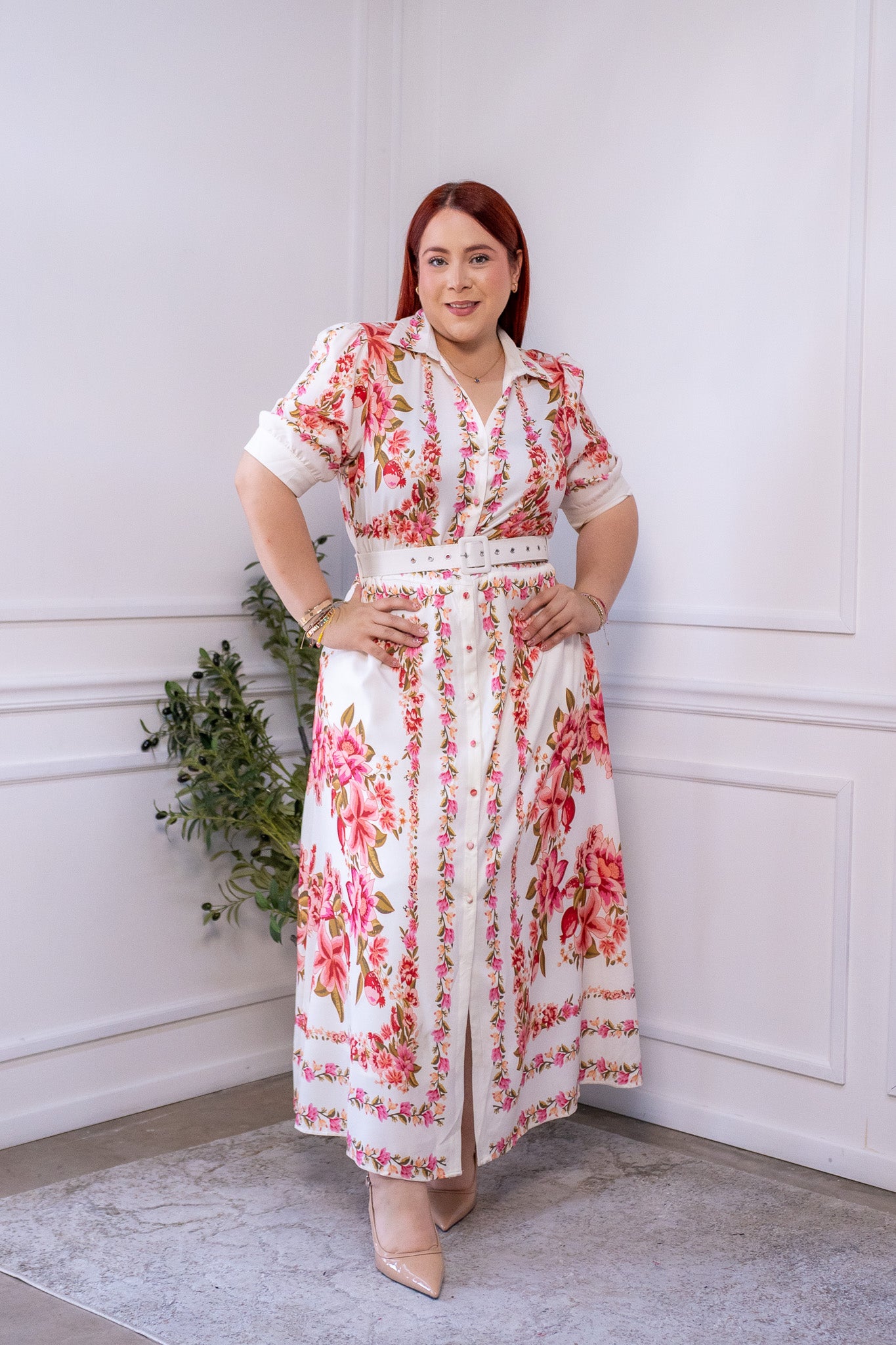 Maxi vestido camisero floral beige