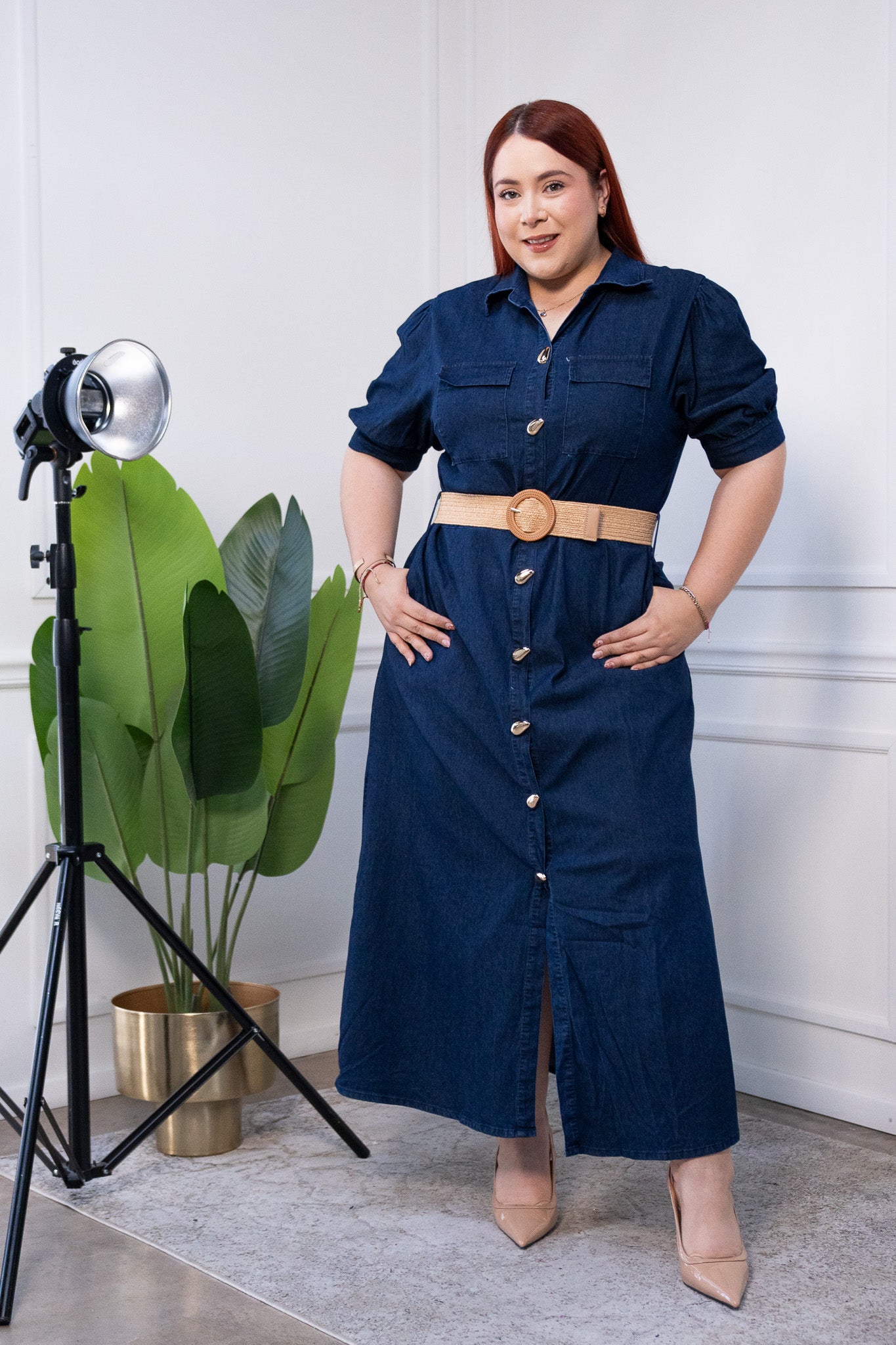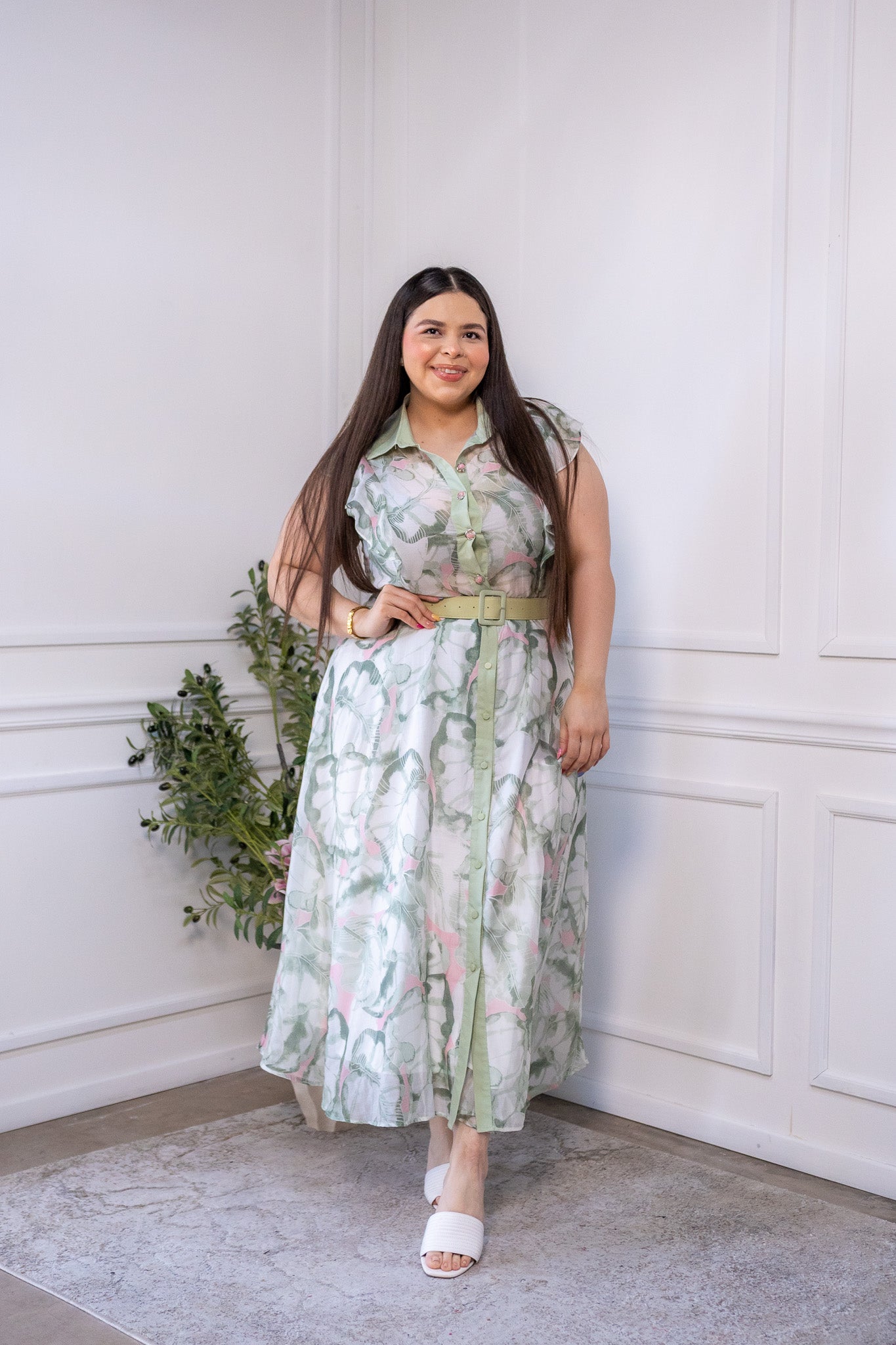 Maxi vestido camisero c/cinto osc