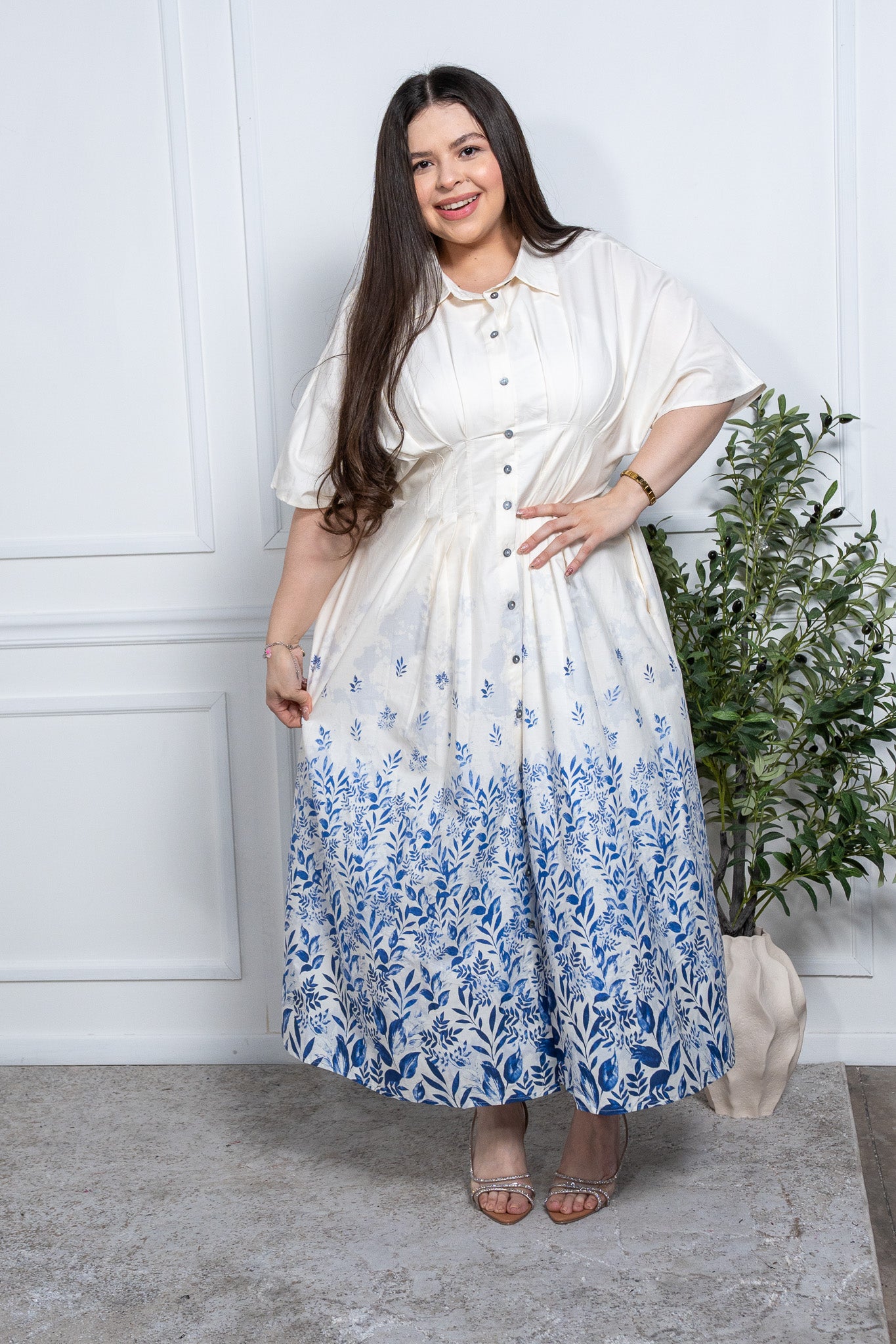 Vestido midi botones floral