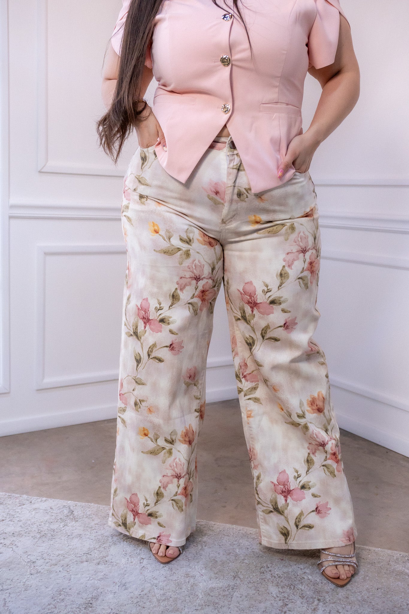 Conjunto de 2 piezas blusa y pantalón de mezclilla. De pierna ancha con cintura elástica, versátil y cómodo.