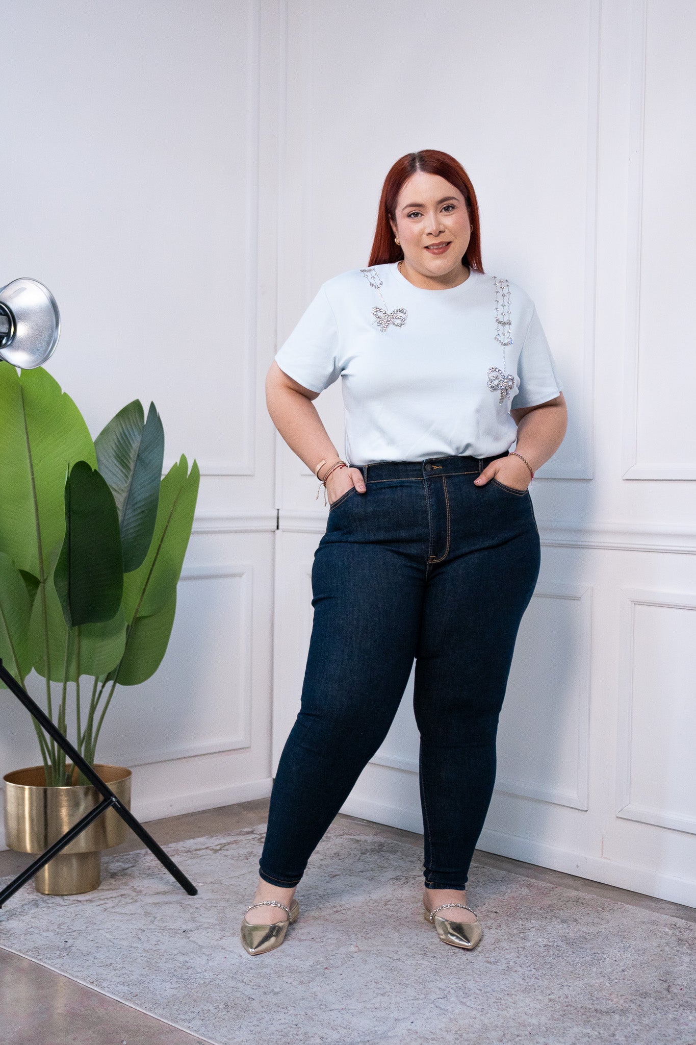 Blusa detalles piedras rosa