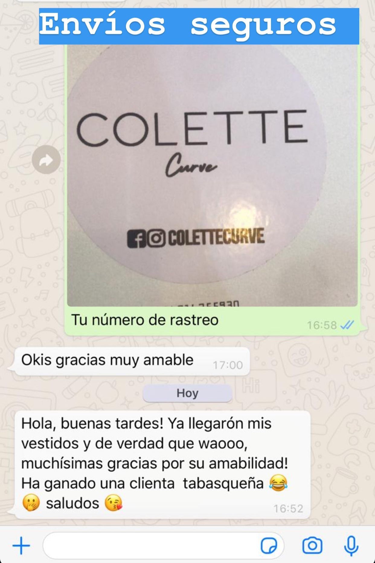 ¡Queremos escucharte! Si tienes alguna duda o comentario sobre nuestros productos, envíos o cualquier otra cosa, estamos aquí para ayudarte. En Colette Curve, tu opinión es muy importante para nosotros. Déjanos tu mensaje por medio de Whatsapp y nuestro equipo estará encantado de responderte lo antes posible. ¡Tu satisfacción es nuestra prioridad!