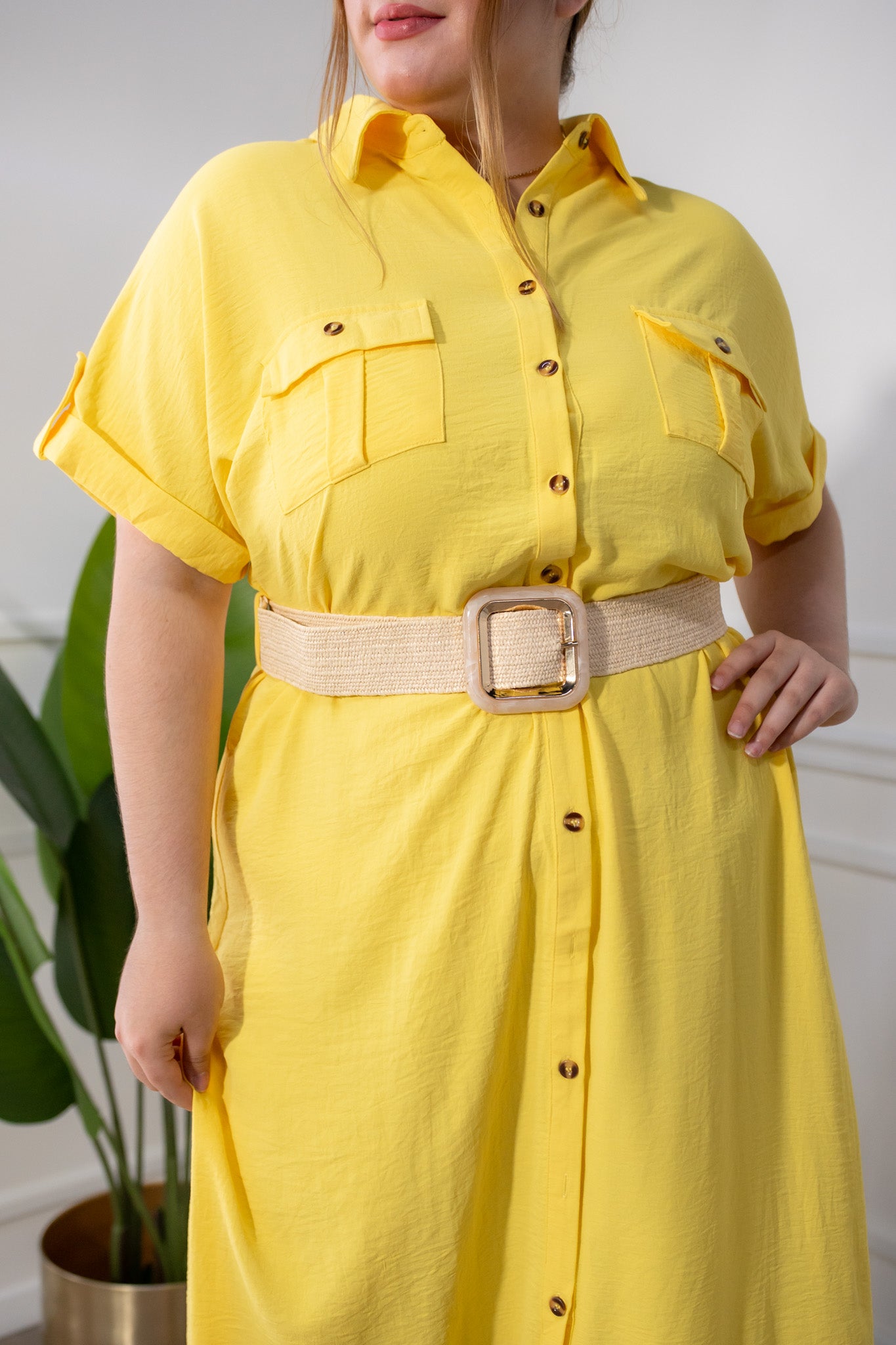 Vestido largo camisero con lazo amarillo