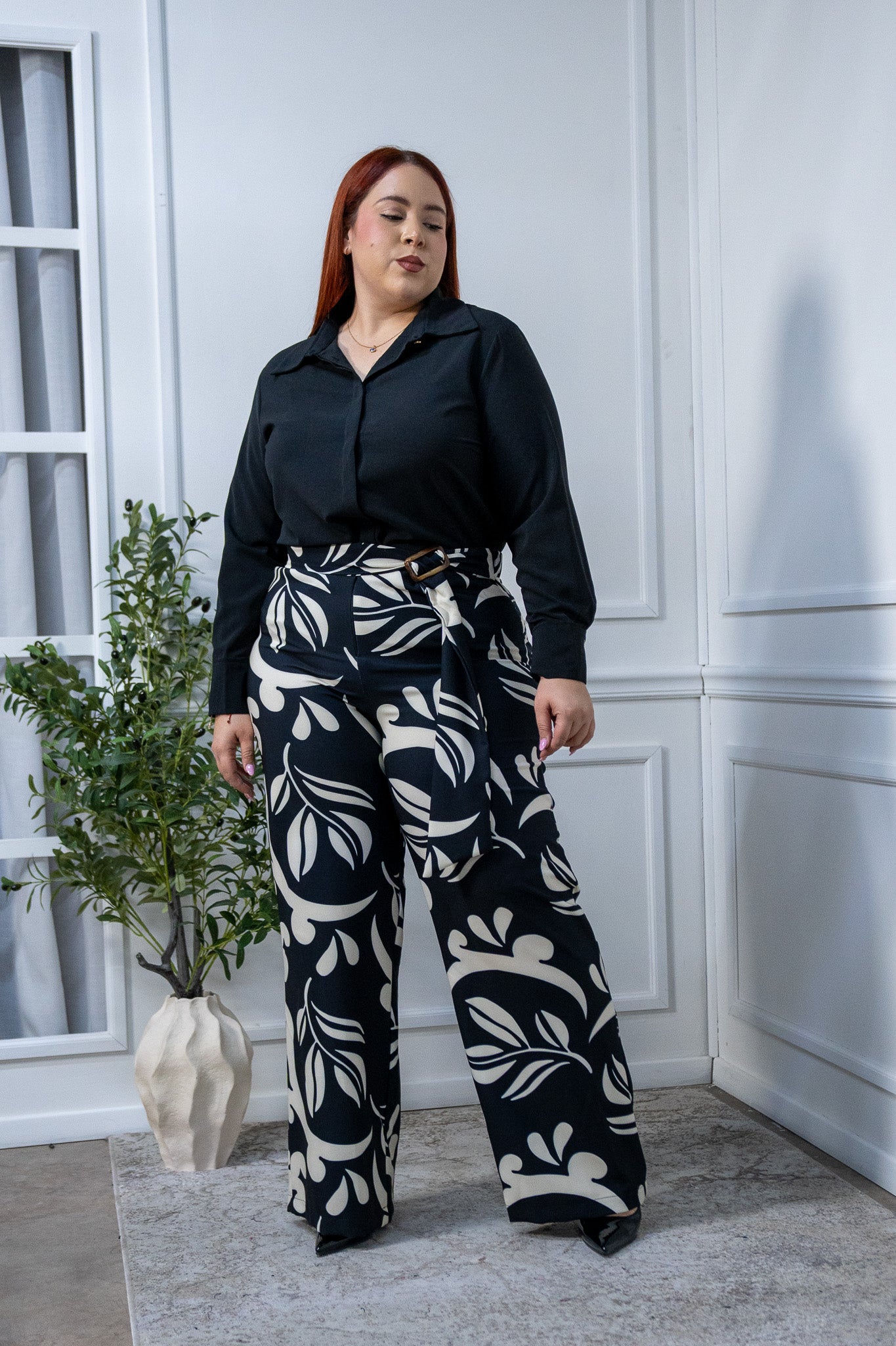 Pantalon tipo palazo c/cinto b&n
