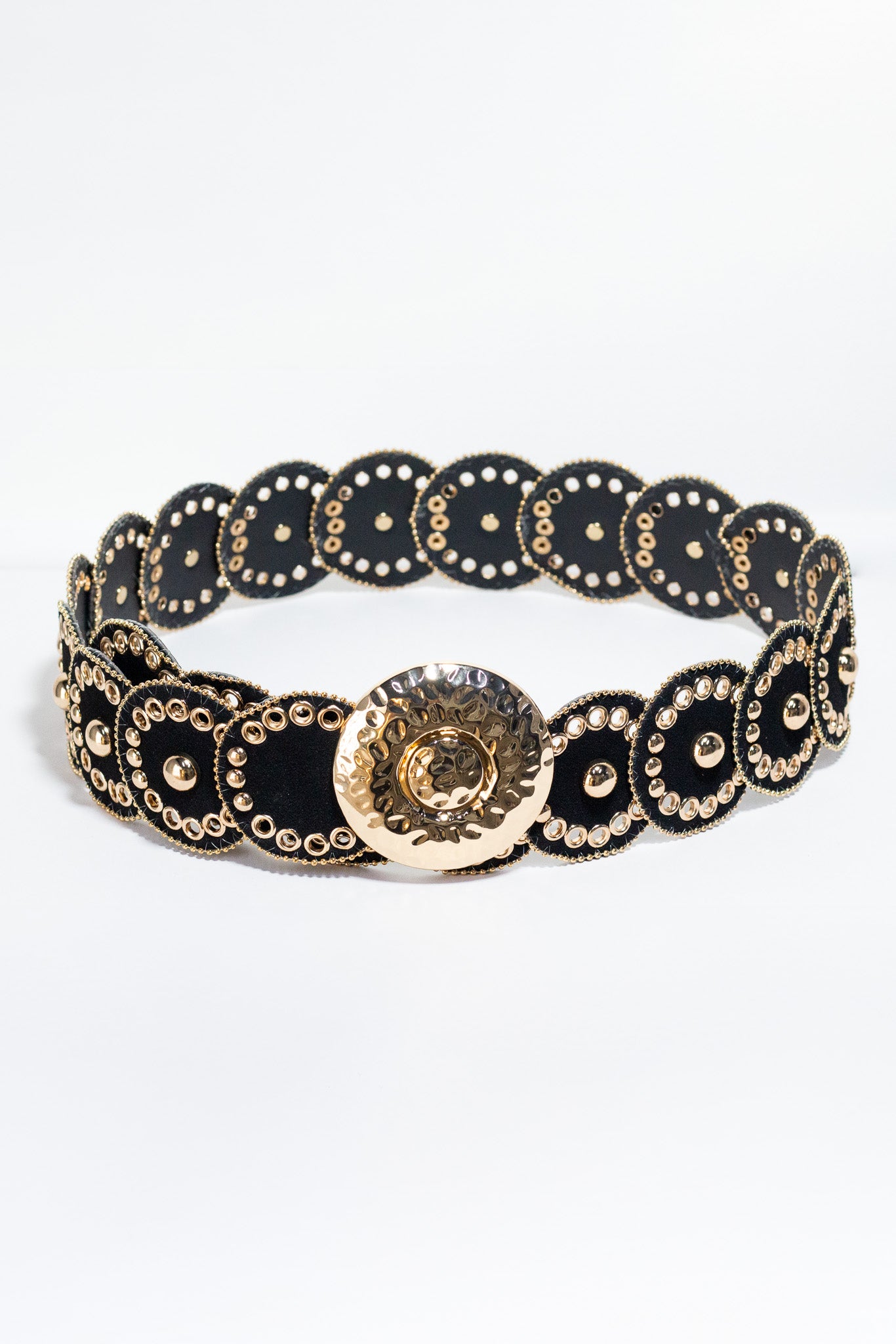 Cinto circulos c/dorado neg