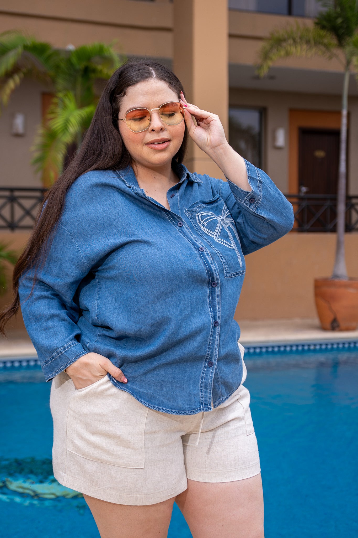 Camisa lisa denim c/bolsa