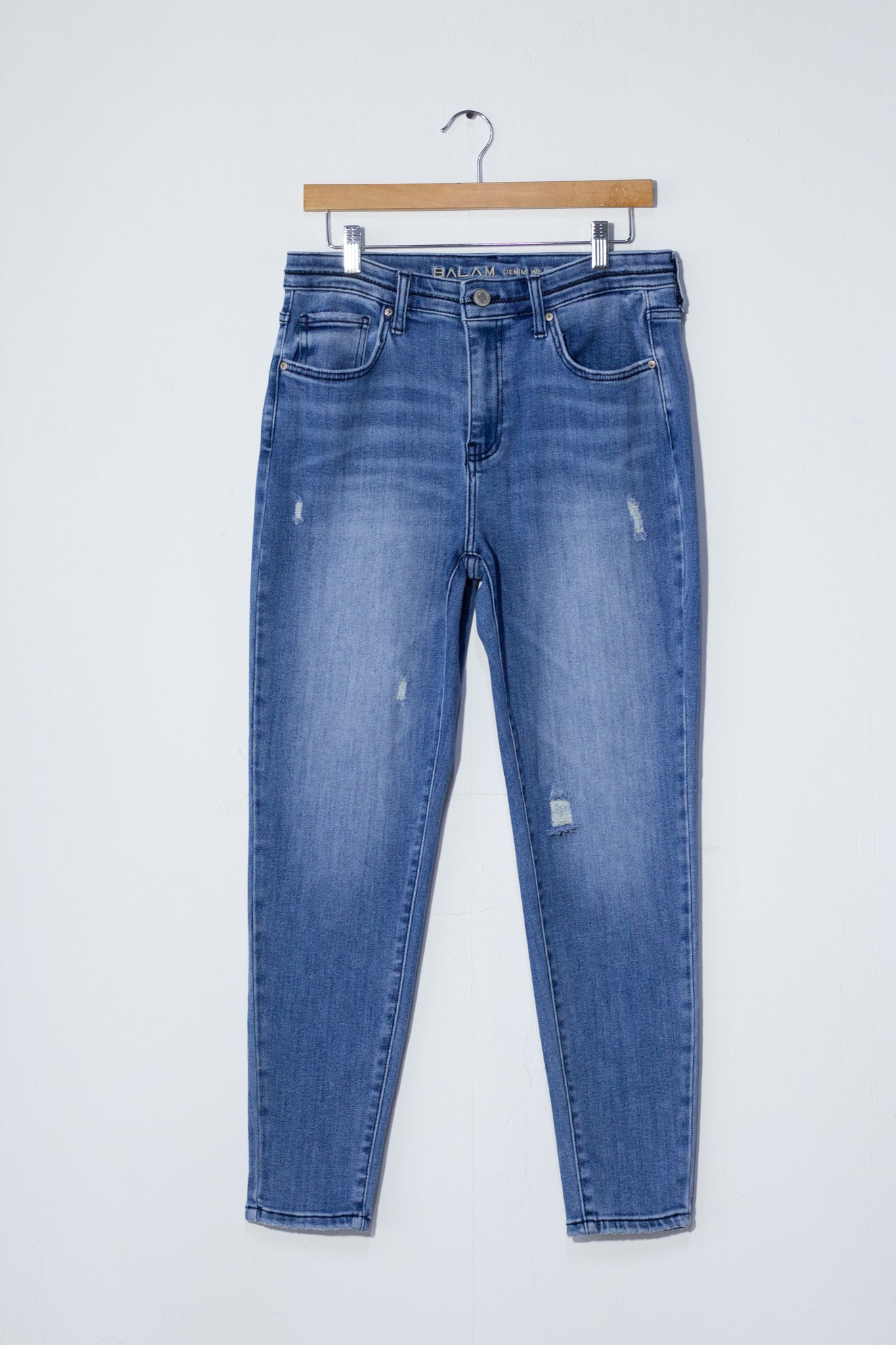 Jeans Skinny Azul con Detalles Rotos con Parches
