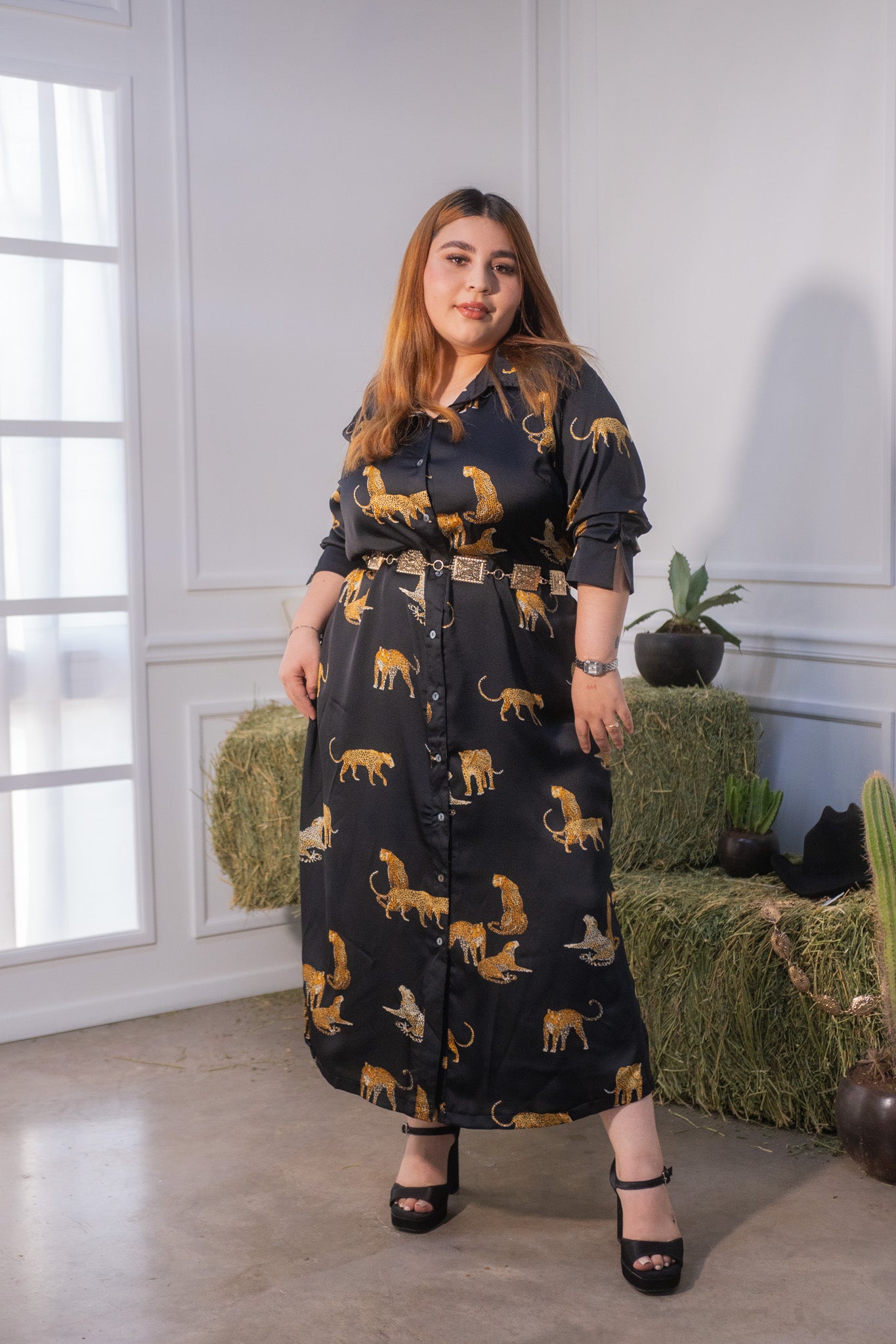 Vestido largo camisero leopardo