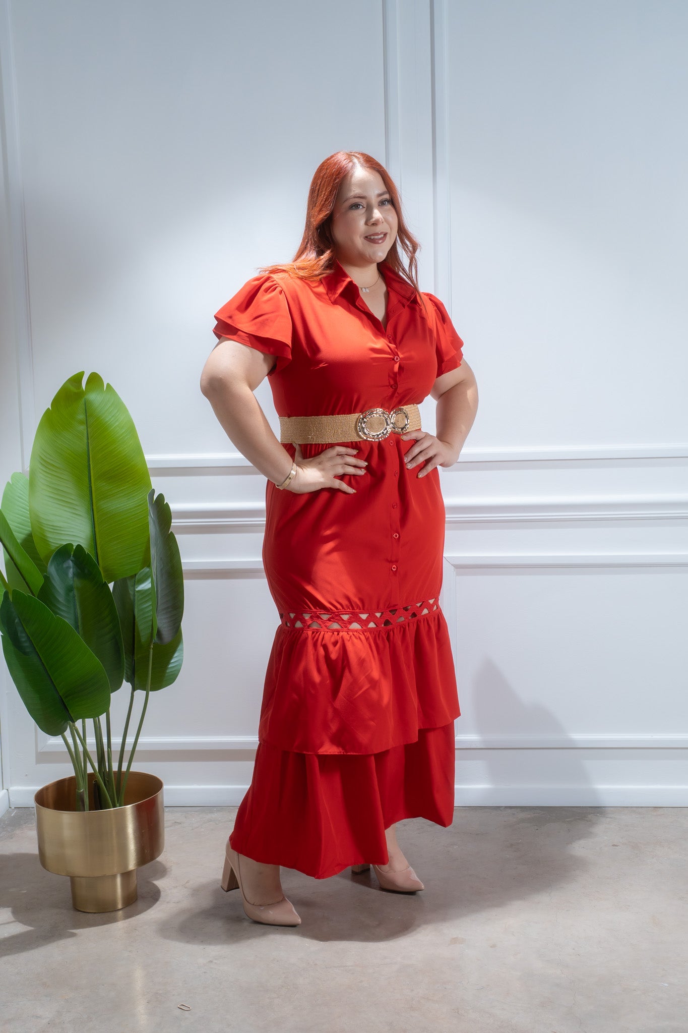 Maxi vestido c/cinto surcido rojo