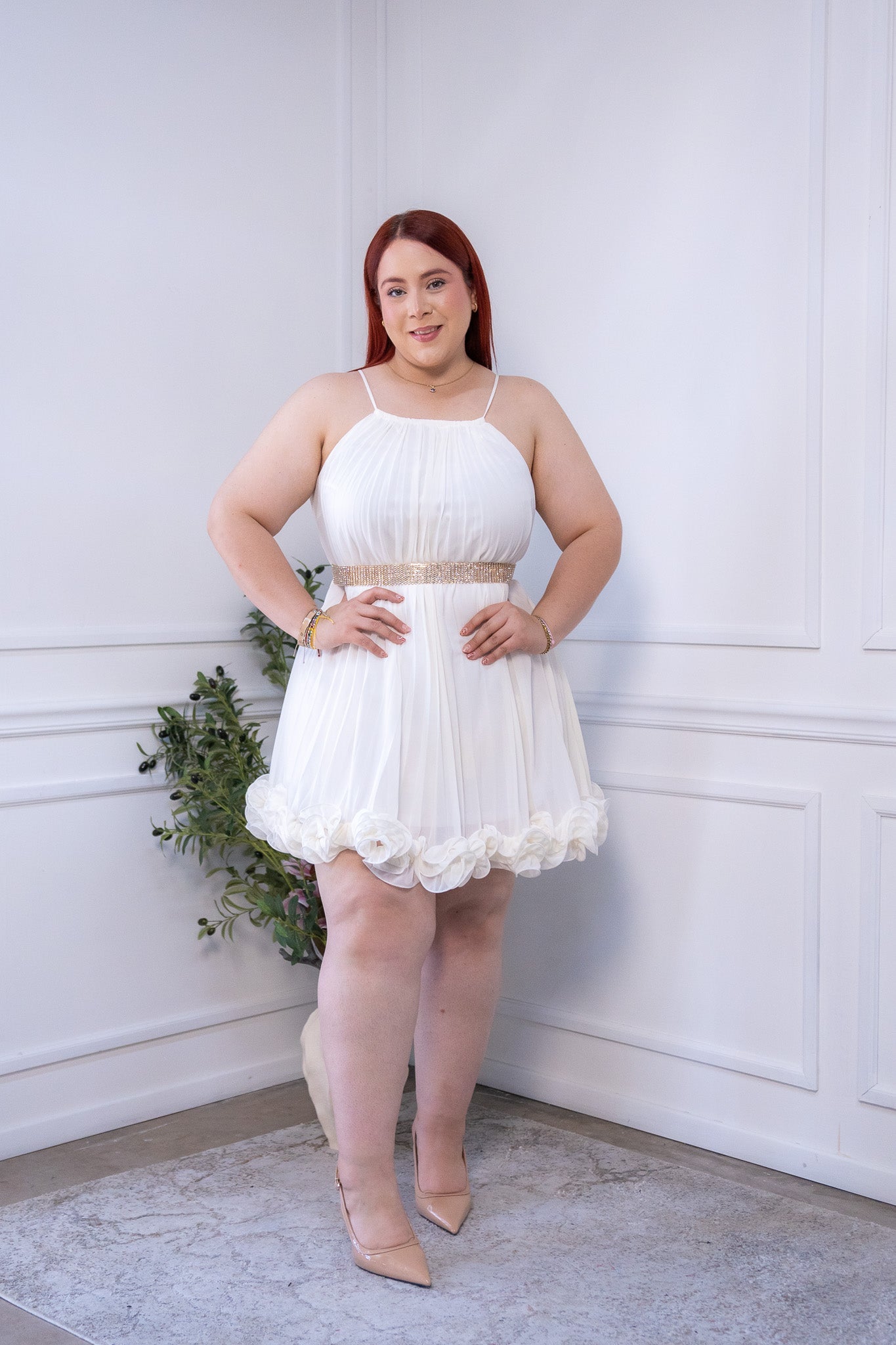 Vestido corto plisado bco