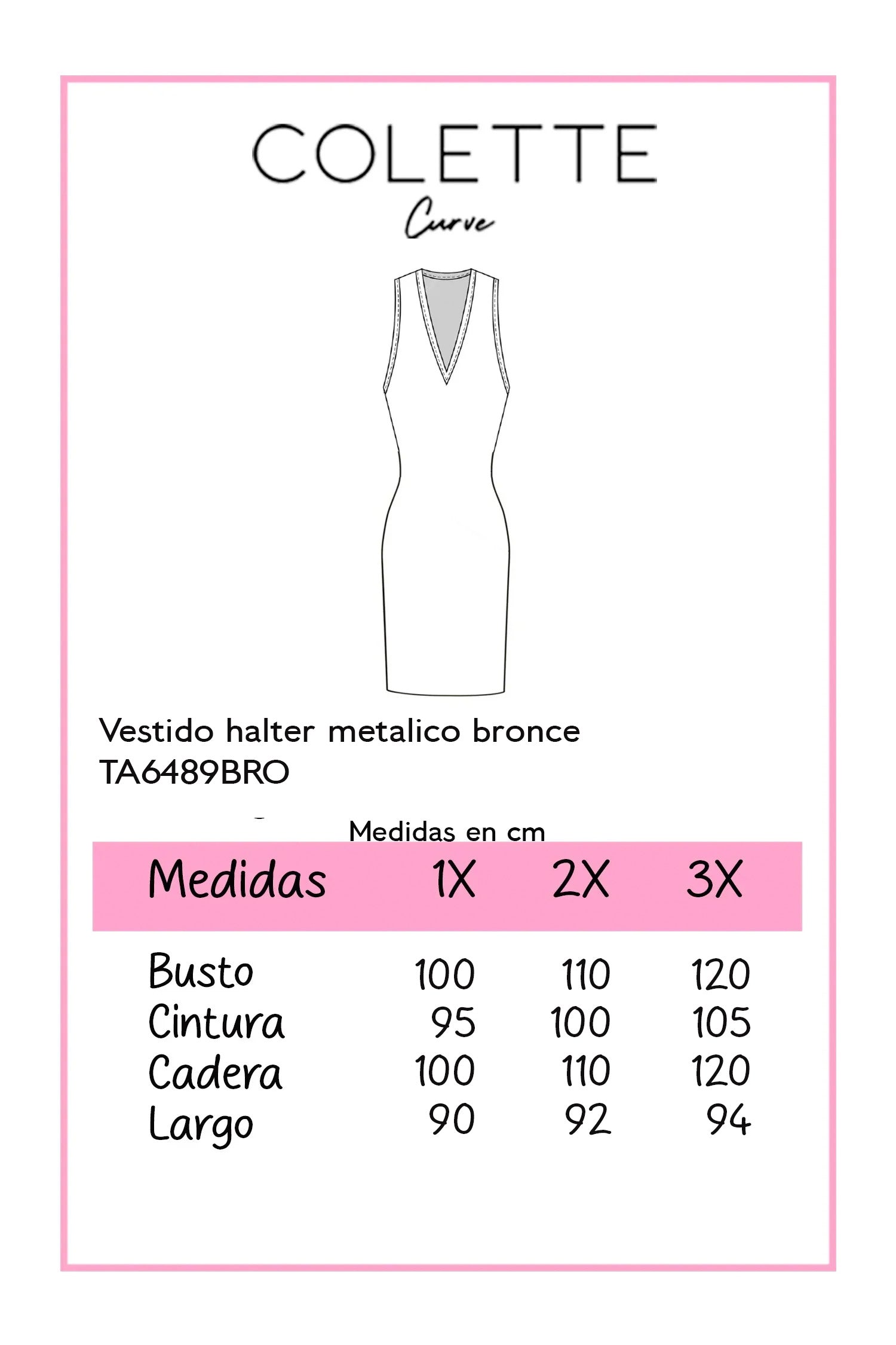 Vestido halter metalico bronce