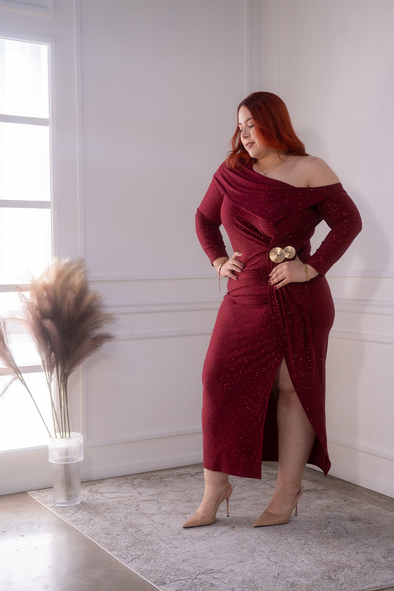 Vestido glitter cruzado tinto