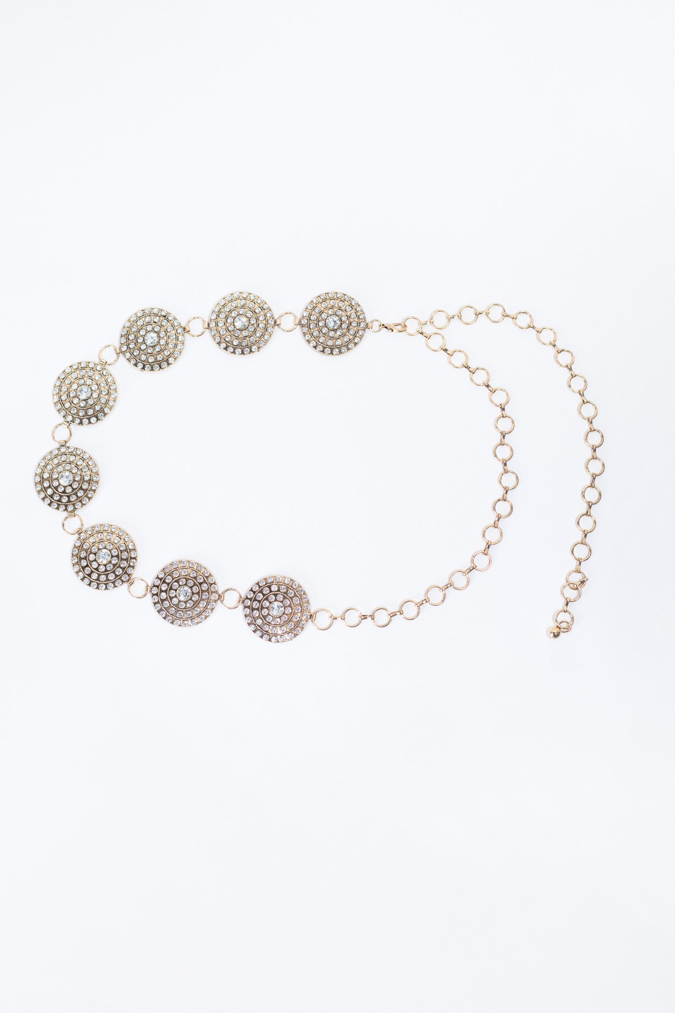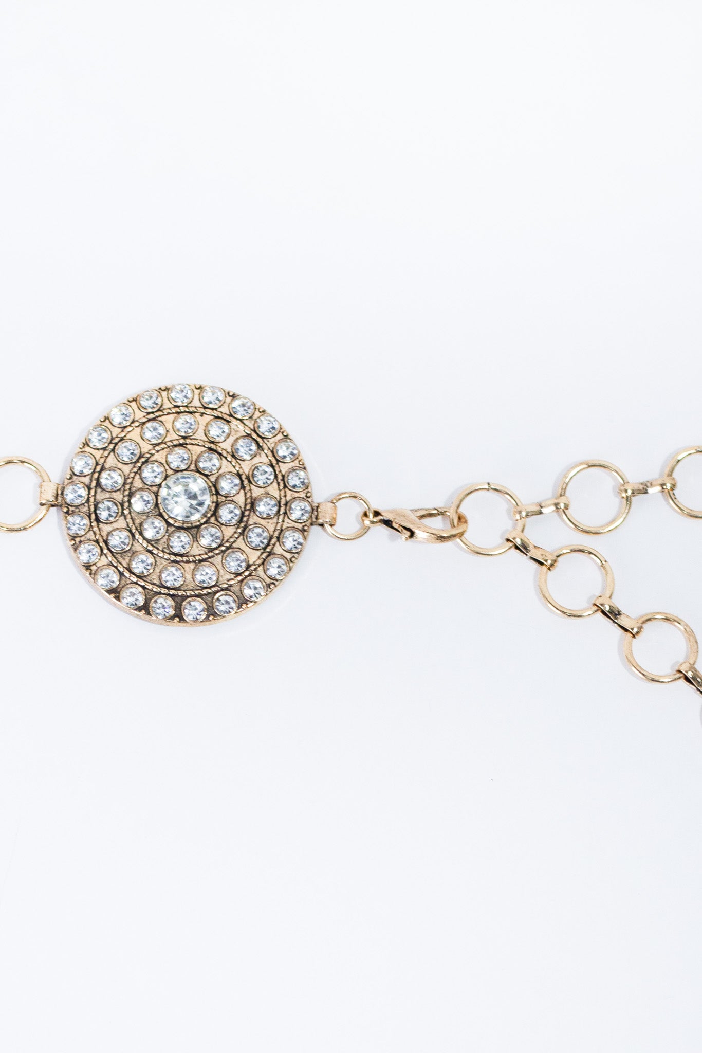 Cinto cadena círculos piedras dorado