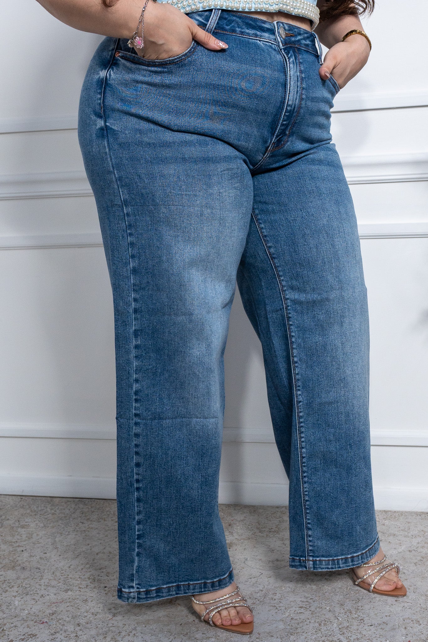Dark wide leg jeans