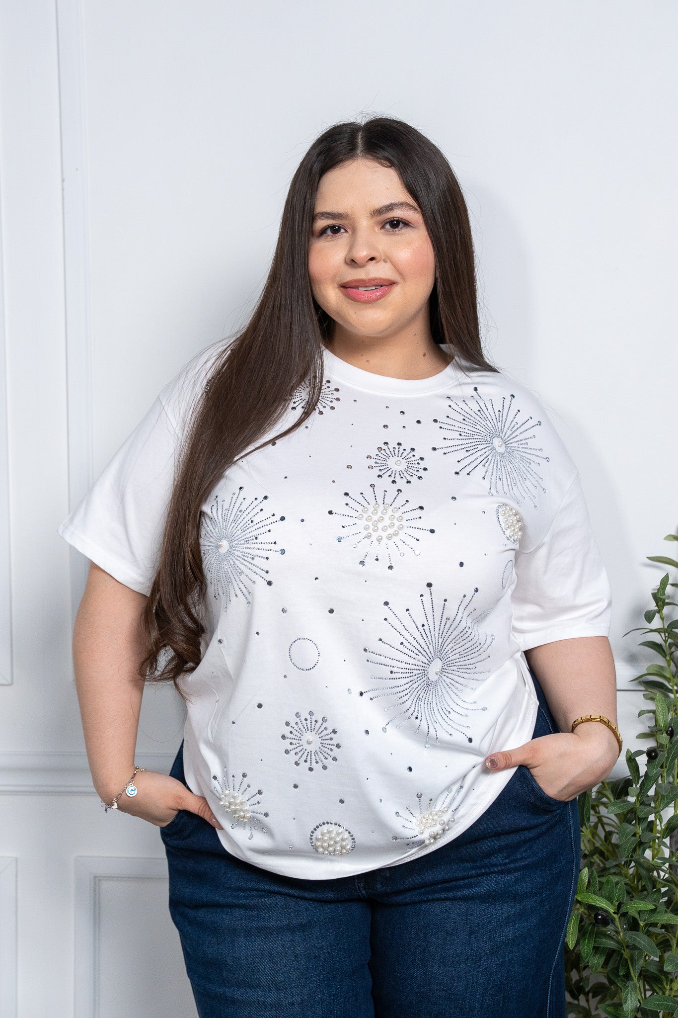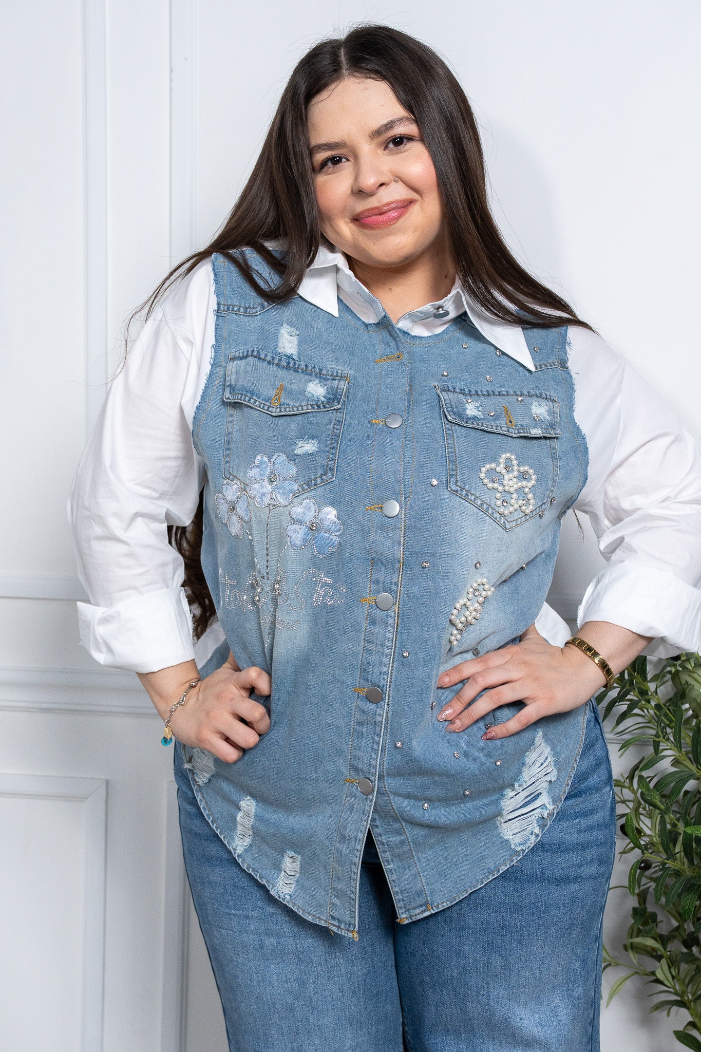 Denim shirt with white stones