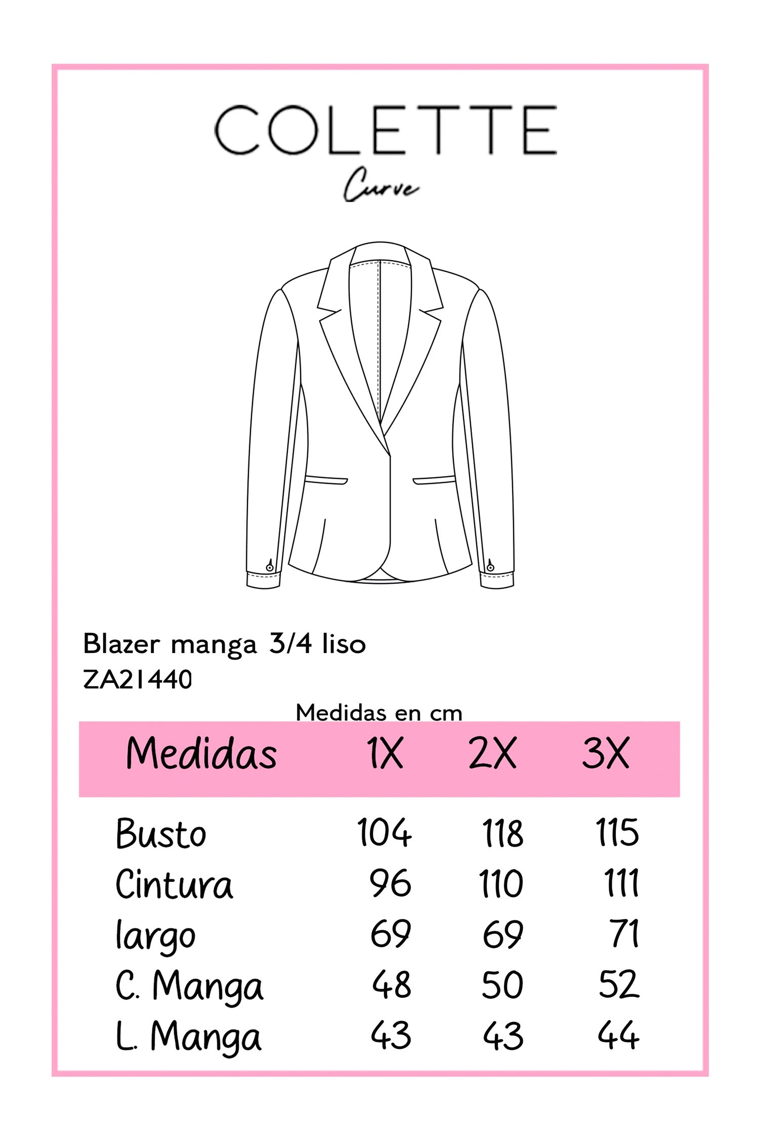 Blazer manga 3/4 liso