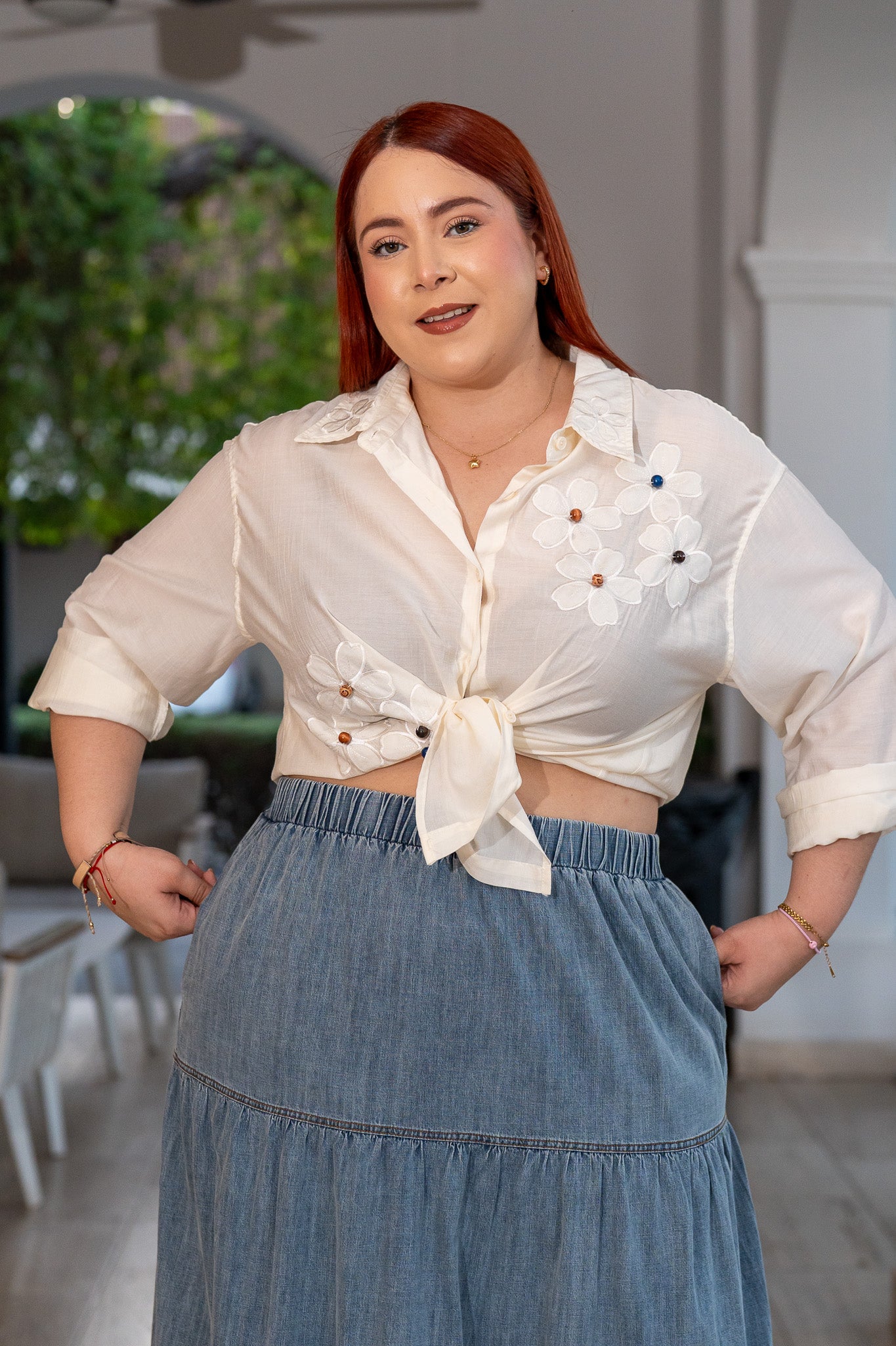 PLAIN CHIFFON SHIRT WITH BUTTON WHITE