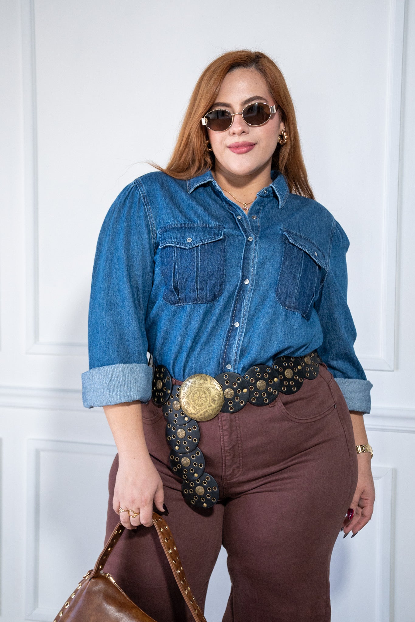 Maxi vestido camisero con cinto denim