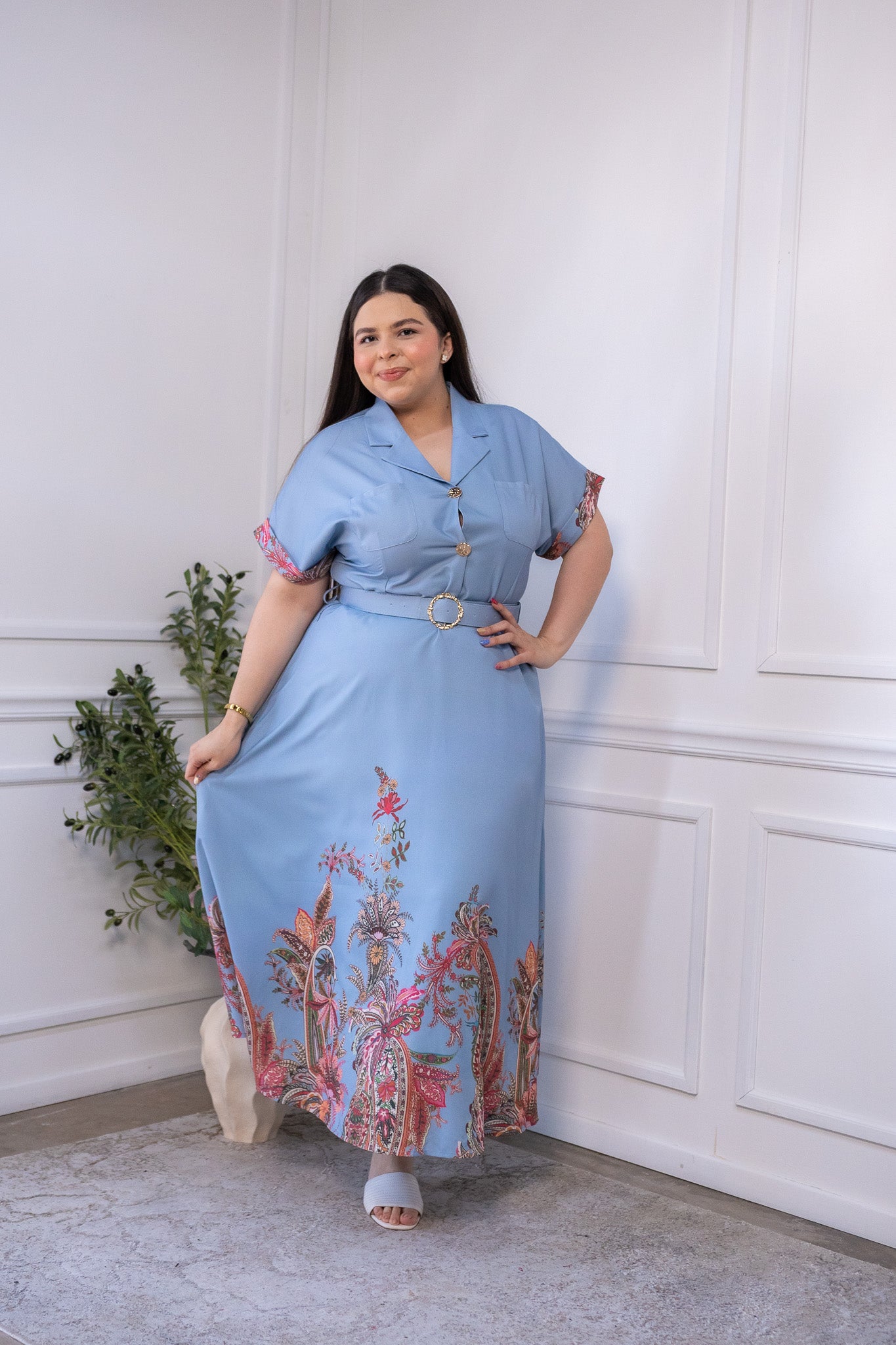 Maxi vestido detalles c/cinto azul