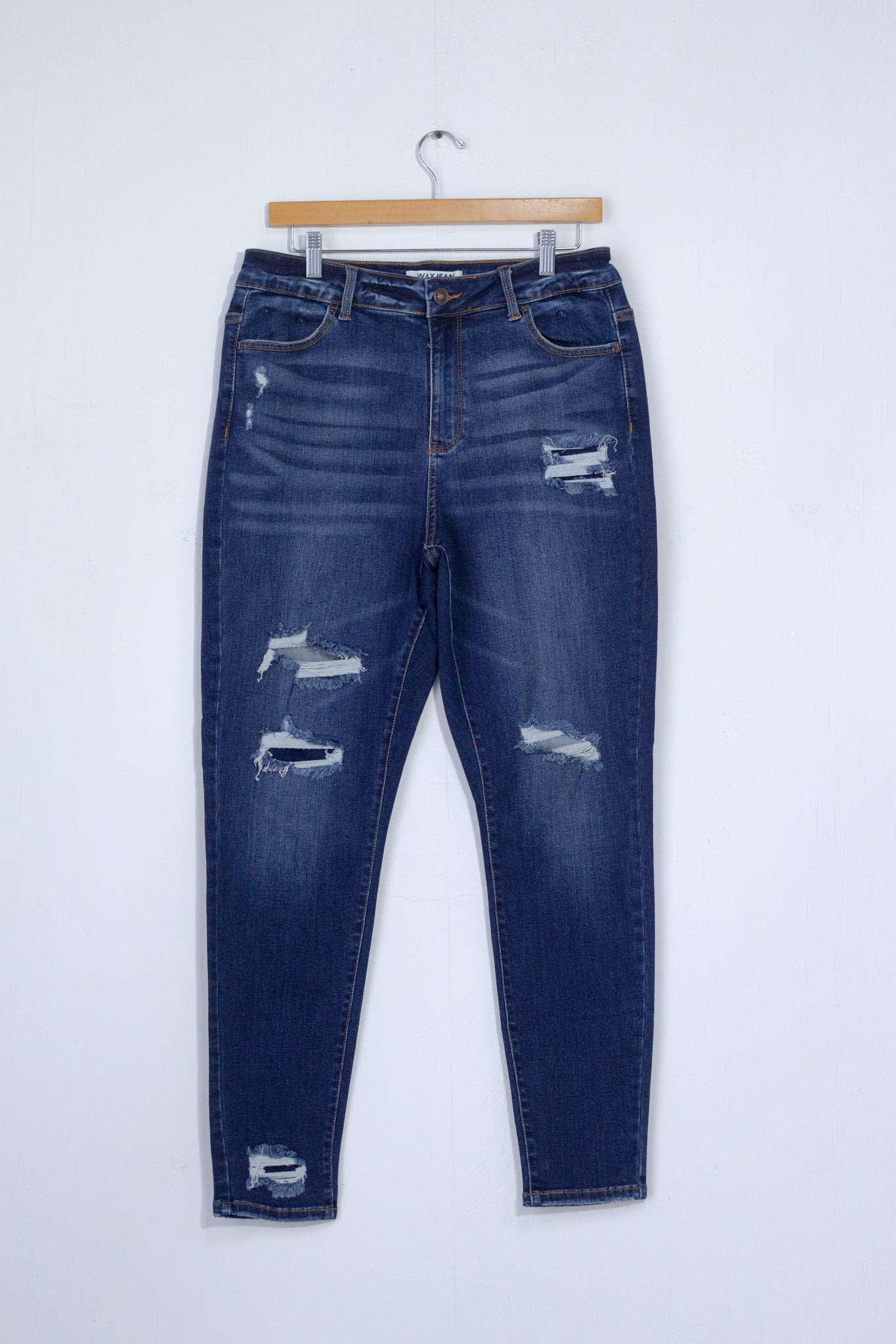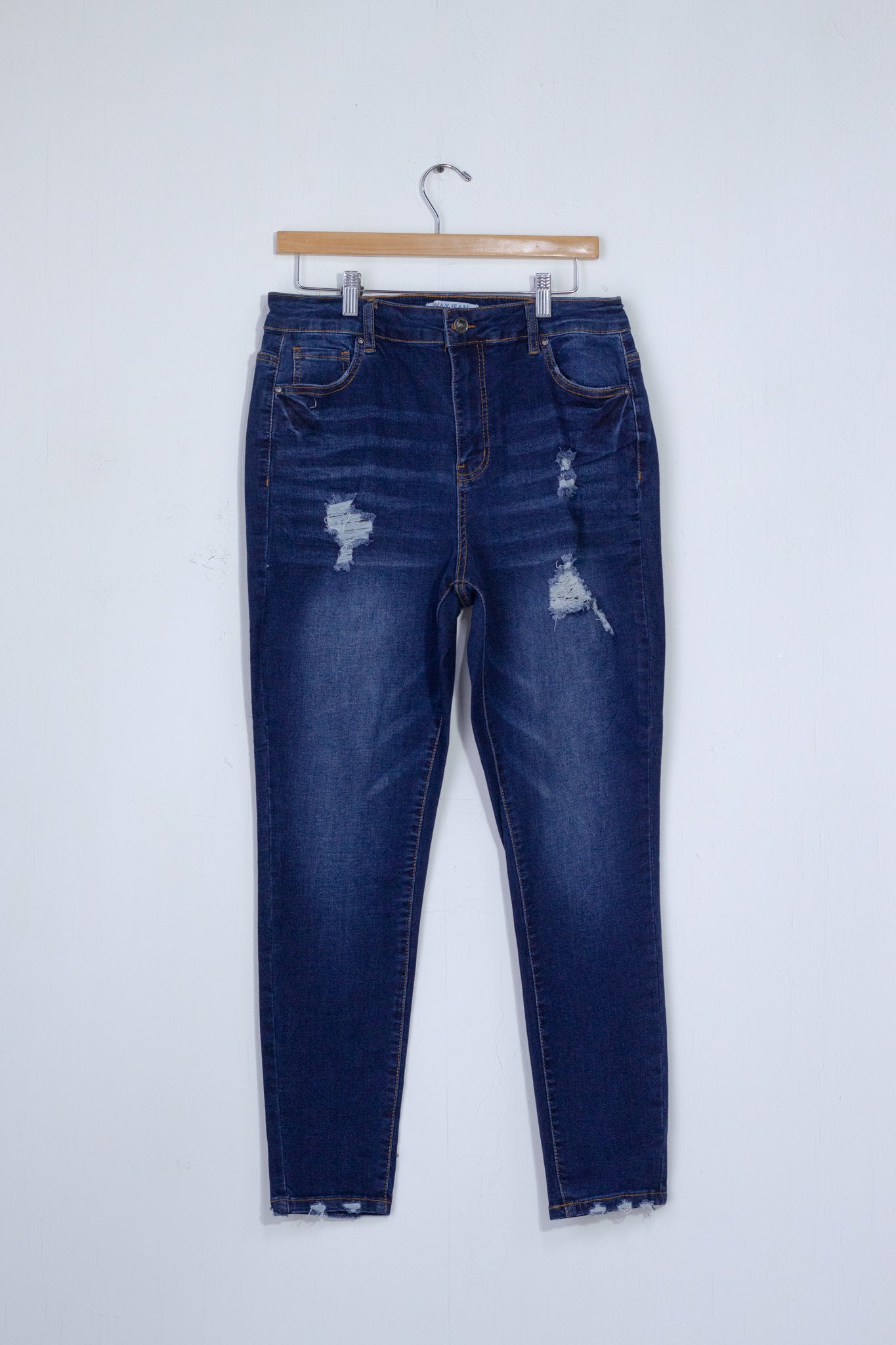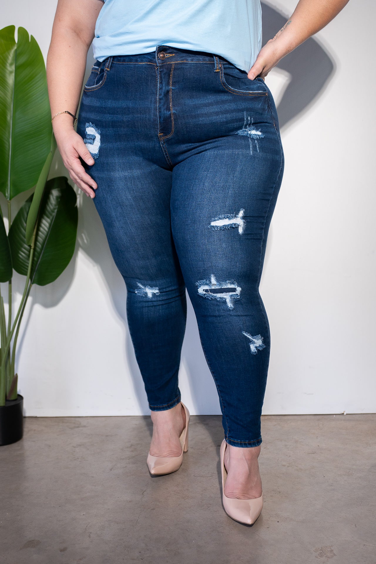 Jeans Skinny Azul con Detalles Rotos con Parches