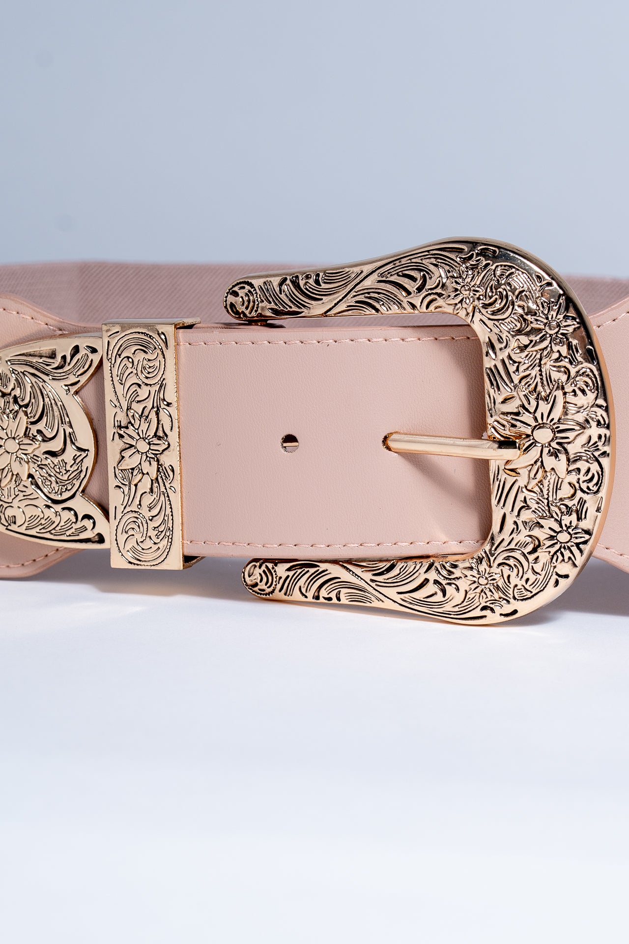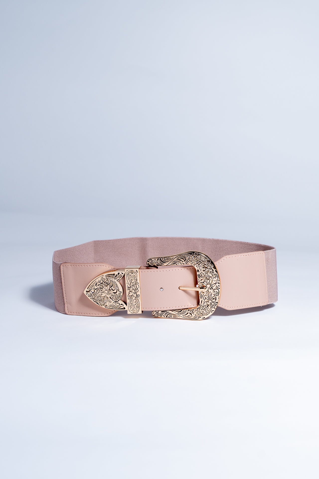 Cinto Elástico Beige con Hebilla Vaquera Dorada
