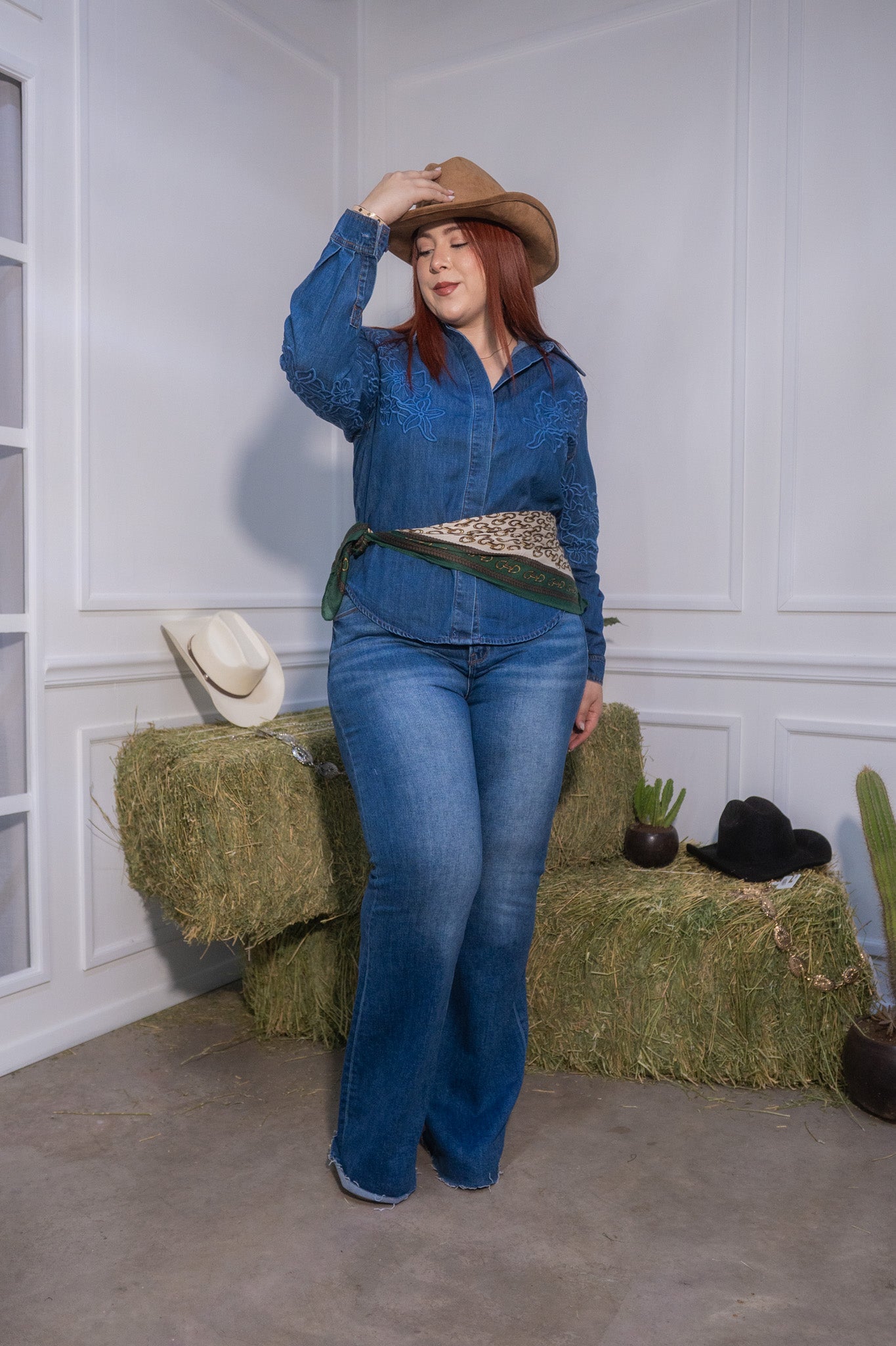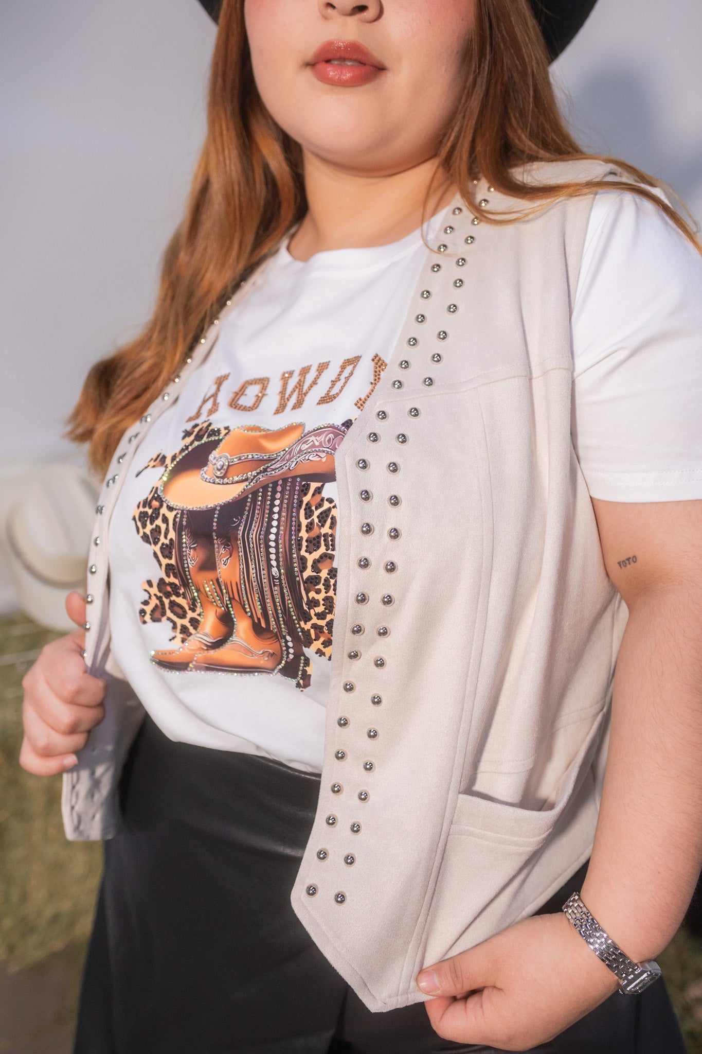 Cinto Elástico Beige con Hebilla Vaquera Dorada